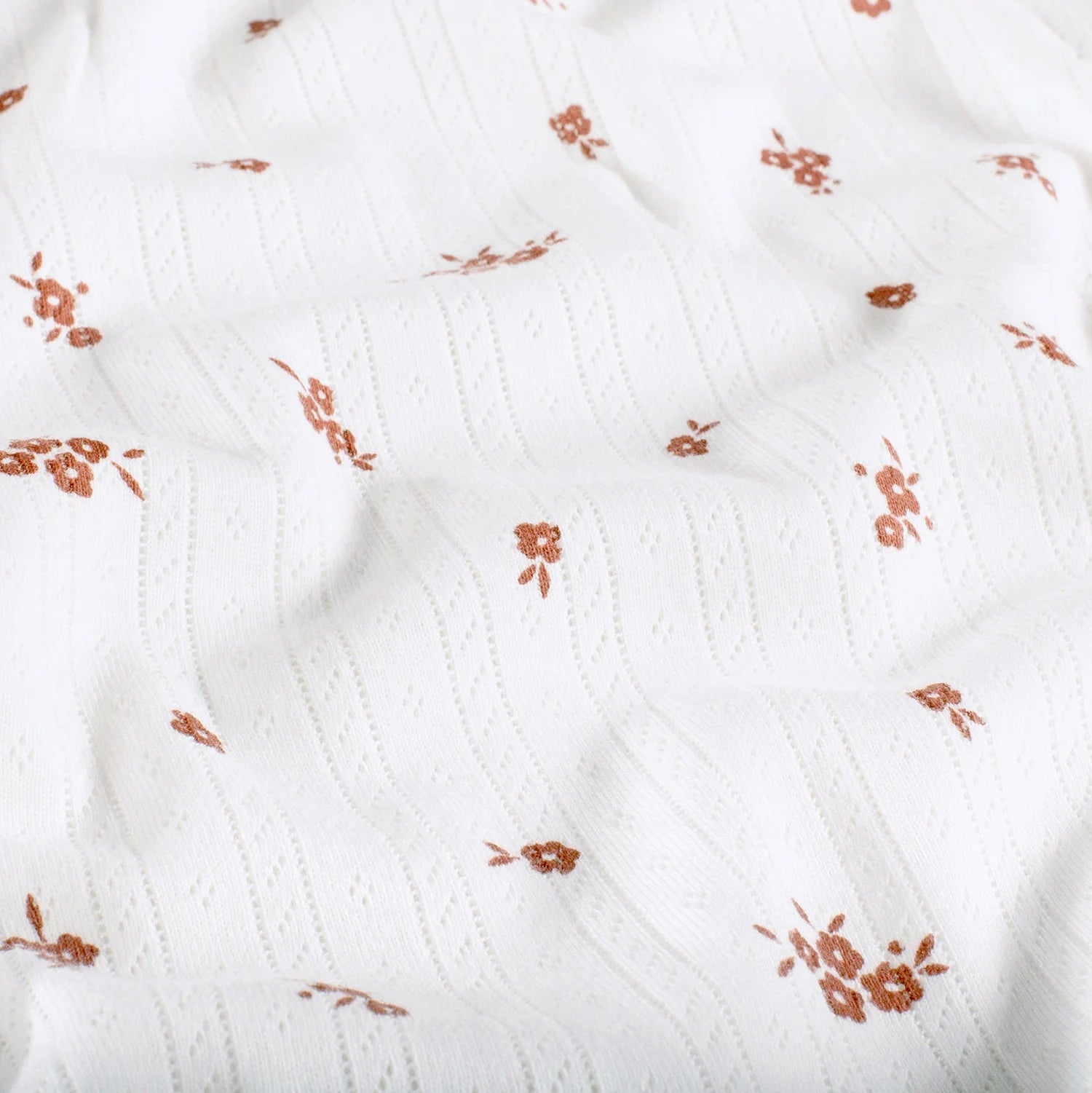 Pointelle jersey is a soft and elastic fine-knit fabric with an openwork pattern that offers great comfort and freedom of movement. It is suitable for both children's and adult clothing. This jersey is an excellent choice for t-shirts, dresses, leggings, and baby clothes. A versatile material that makes it easy to create comfortable and functional garments for everyday and leisure.